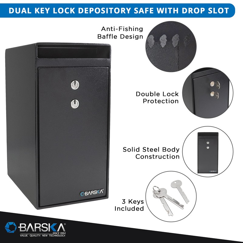 Barska AX13558 Dual Key Depository Safe 0.27 Cu Ft with Drop Slot and Quick Release Bolt, Black