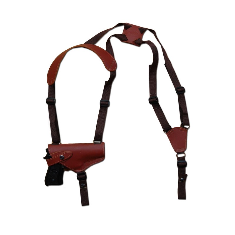 • This traditional shoulder holster has a wide flat shoulder pad made from durable suede leather which grabs your clothing and does not slide from your shoulder as easily as Cordura shoulder pads.