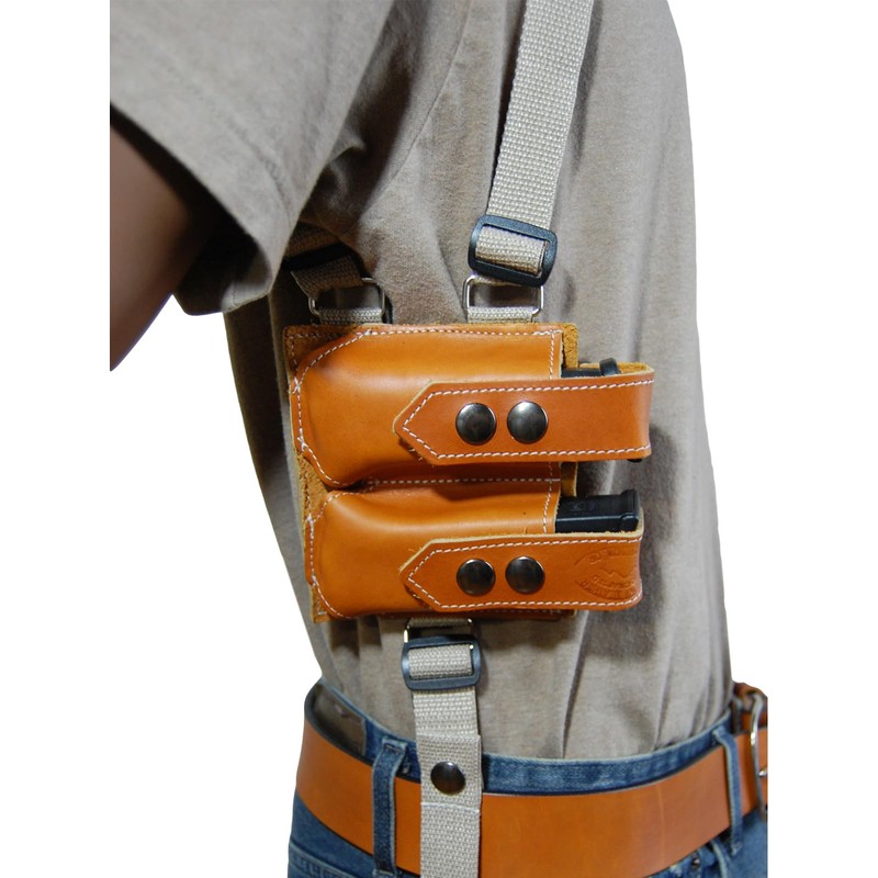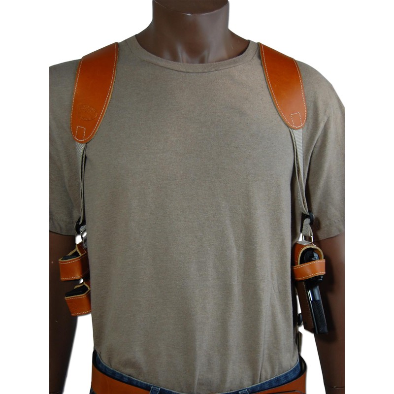 • Premium Quality Leather Shoulder Holster with Double Magazine Pouch made with precision stitching, lightweight (only 12 oz) and is made in the USA. Adjustable up to 60" chest size.