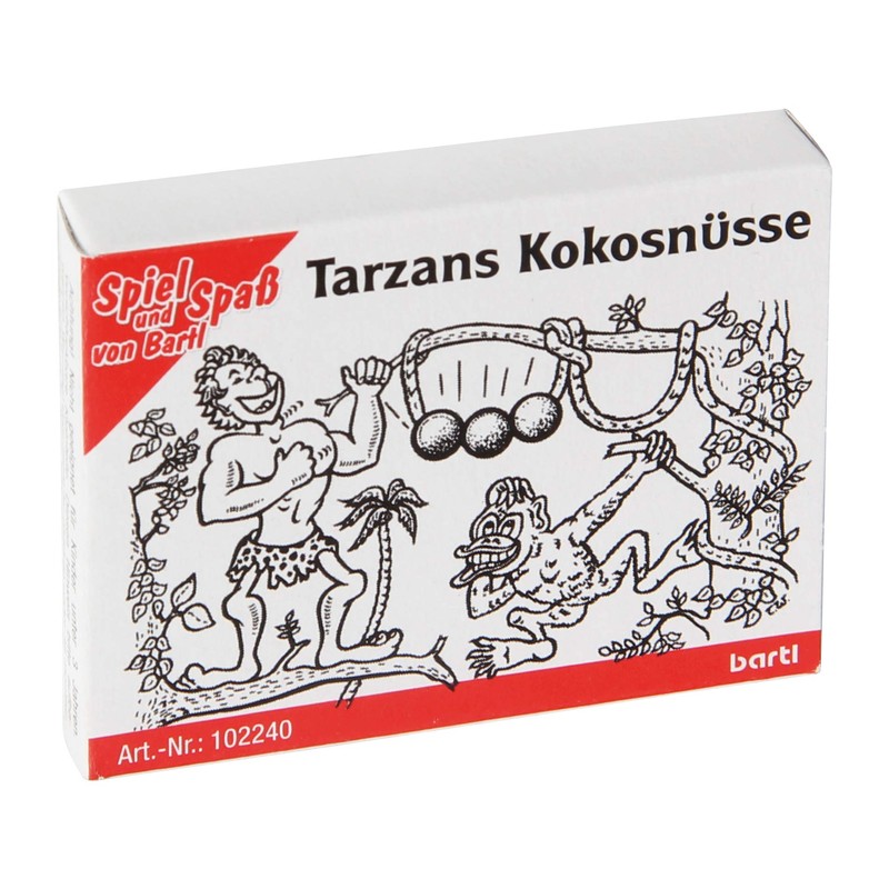 Bartl 102240 Mini Wooden Puzzle Tarzans Coconuts from a Wooden Board with String and 2 Wooden Beads