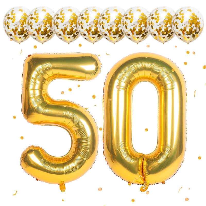 - Sparkling Birthday Balloon Set: Large 39.4 inches (100 cm) number balloons have a huge impact. You can also mix and match with the eight gold confetti balloons for a sparkly and festive birthday party!