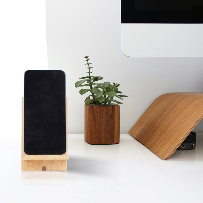 BARUHARI wooden mobile stand keeps your mobile phone upright and you don’t have to hold it with your hands. Simply put the stand on your bedside table, nightstand or work table, then place your device on it. This mobile stand for desktop keeps your hands free so you can concentrate on finishing your work or having a more enjoyable time when using your phone for entertainment and relaxation. Available in two variants: Adjustable Tilt with Japanese style accent and Fixed tilt with no accent.