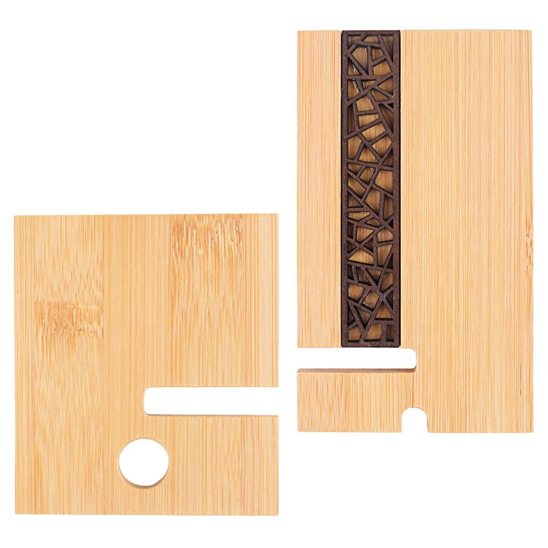 BARUHARI Mobile Stand Japanese Style Cellphone Holder Desktop Organizer Charging Station Compatible with All Smartphones Tablets Natural Bamboo Wood Portable Adjustable Angle (PATTERN-2HOLES)