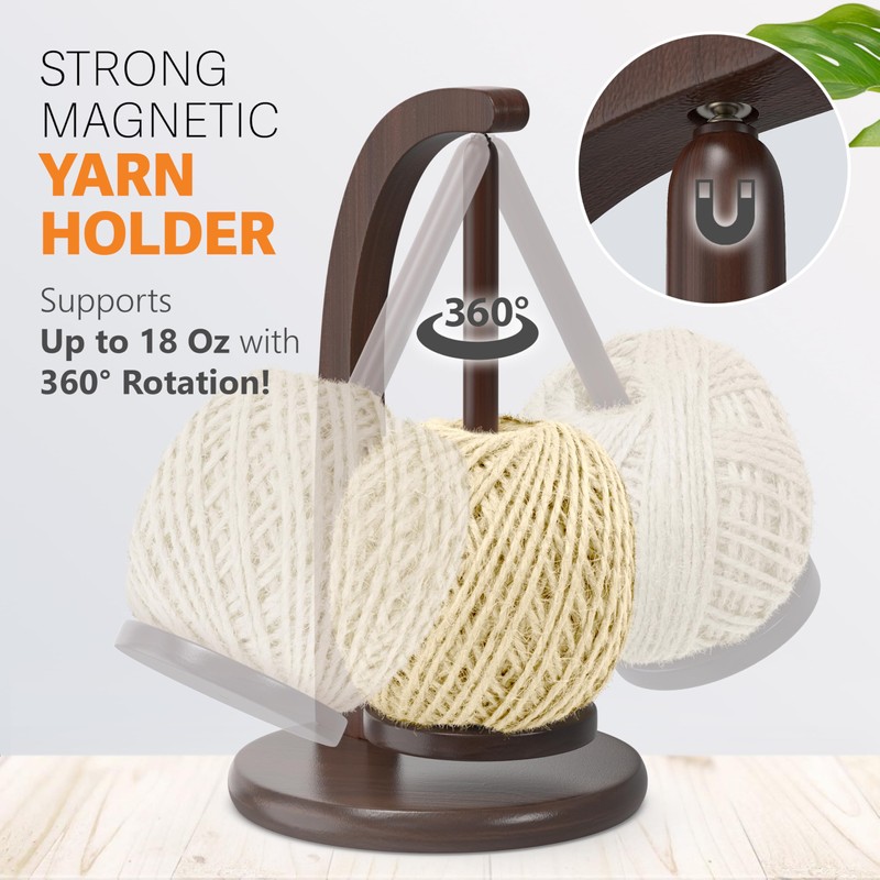 - Increased Capacity: Our larger size model of wood yarn hanger has a super strong magnet and a 9 ½ inch levitating rod. From small balls to large skeins or cupcakes, this crochet yarn holder effortlessly meets your crochet stuff needs.