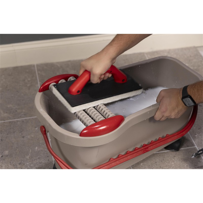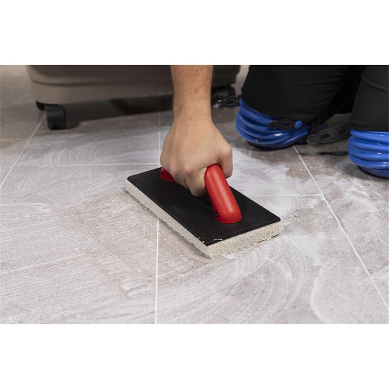 - The grout buckets slotted rollers remove all excess water from the grout sponge.
