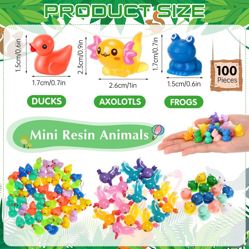 - Diverse Collection: the package includes 100 mini resin animals, featuring colorful and adorable designs with 60 ducks, 20 axolotls, and 20 frogs; With a variety of styles, they are suitable for hiding or decorating dollhouses, micro gardens, and aquariums