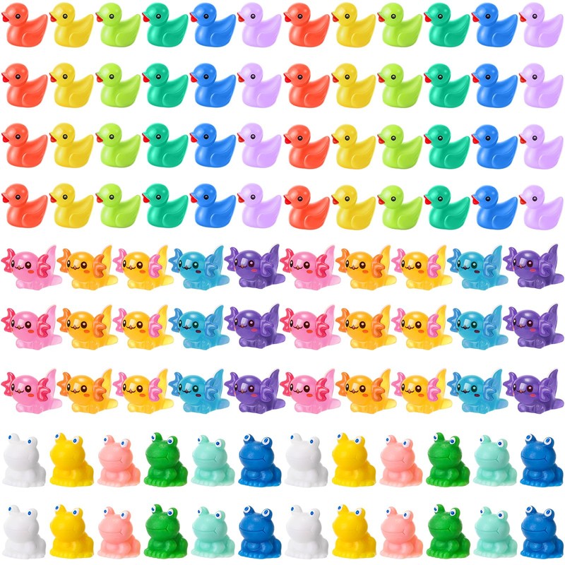 - Diverse Collection: the package includes 100 mini resin animals, featuring colorful and adorable designs with 60 ducks, 20 axolotls, and 20 frogs; With a variety of styles, they are suitable for hiding or decorating dollhouses, micro gardens, and aquariums