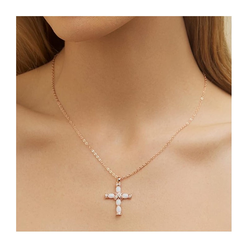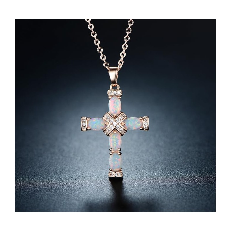 - ✦GIFT IT!✦ This Gold Plated Cross Opal Necklace is the perfect gift for Christmas, Valentine’s Day, Mother Day, Birth Day, Anniversary, Communion, Church or any other occasion that will let your special someone be very Happy and feel important.