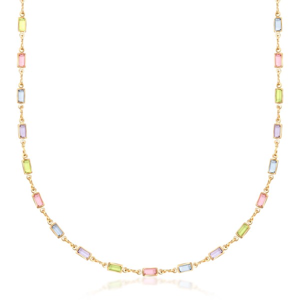 Barzel 18K Gold Plated Multi Stone Crystal Baguette Necklace for Women - Made In Brazil (Multicolor, 24 Inches)
