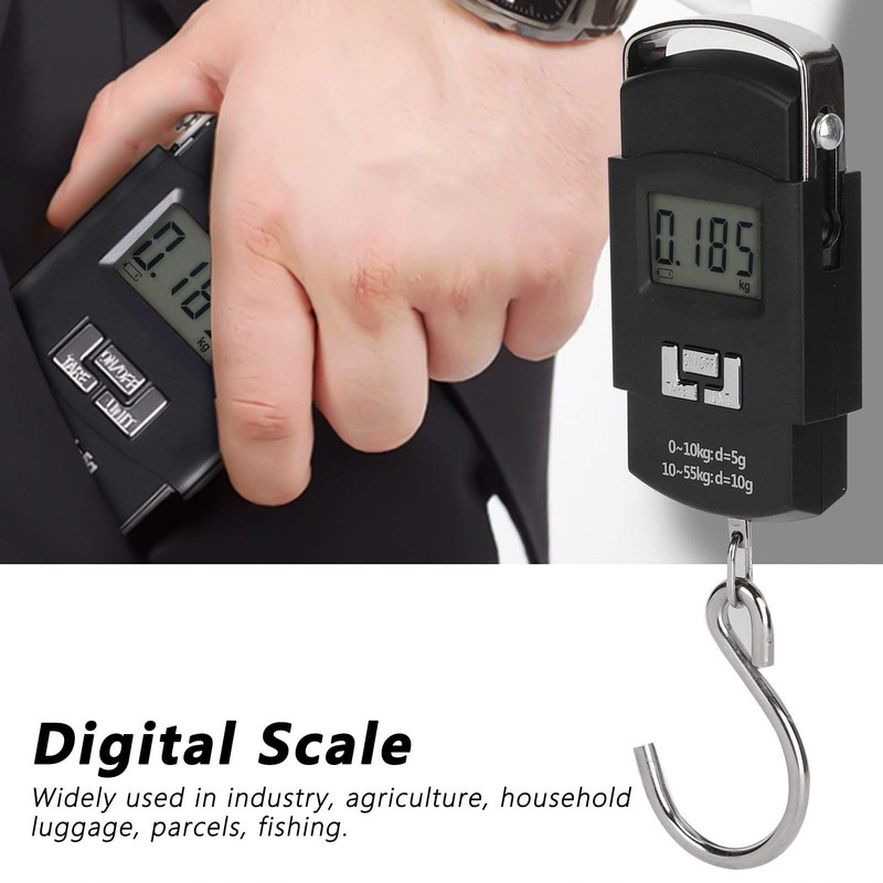 Báscula digital electrónica portátil, balanza electrónica con pantalla LCD de 50 KG, báscula de resorte con gancho para pesaje de paquetes postales de equipaje