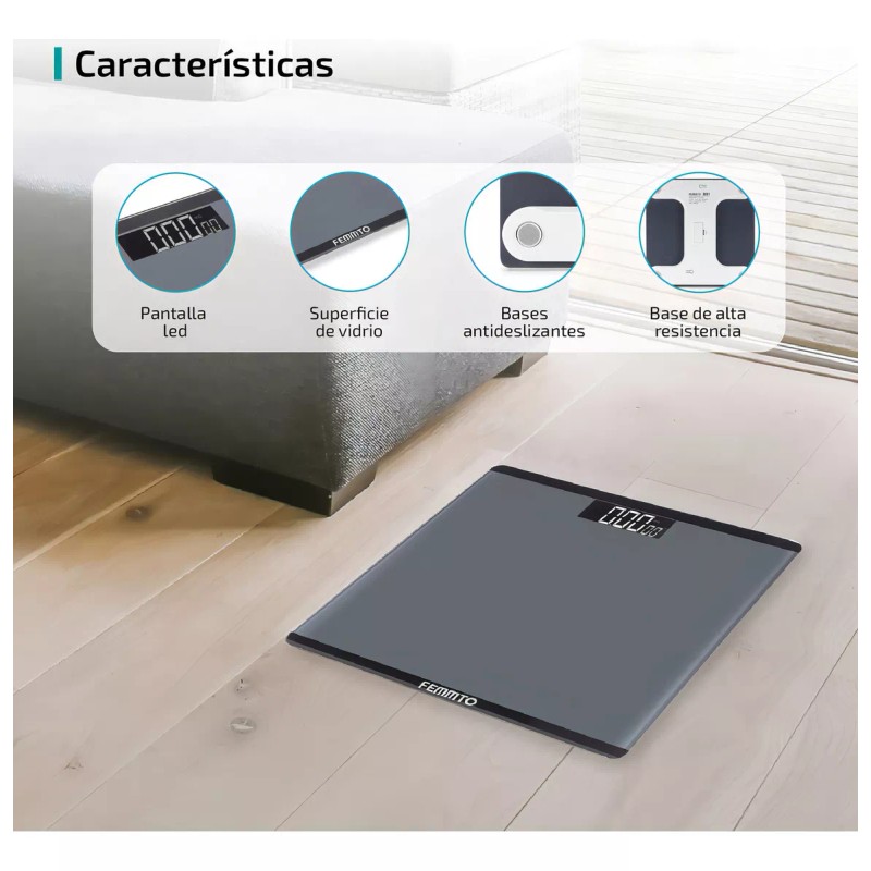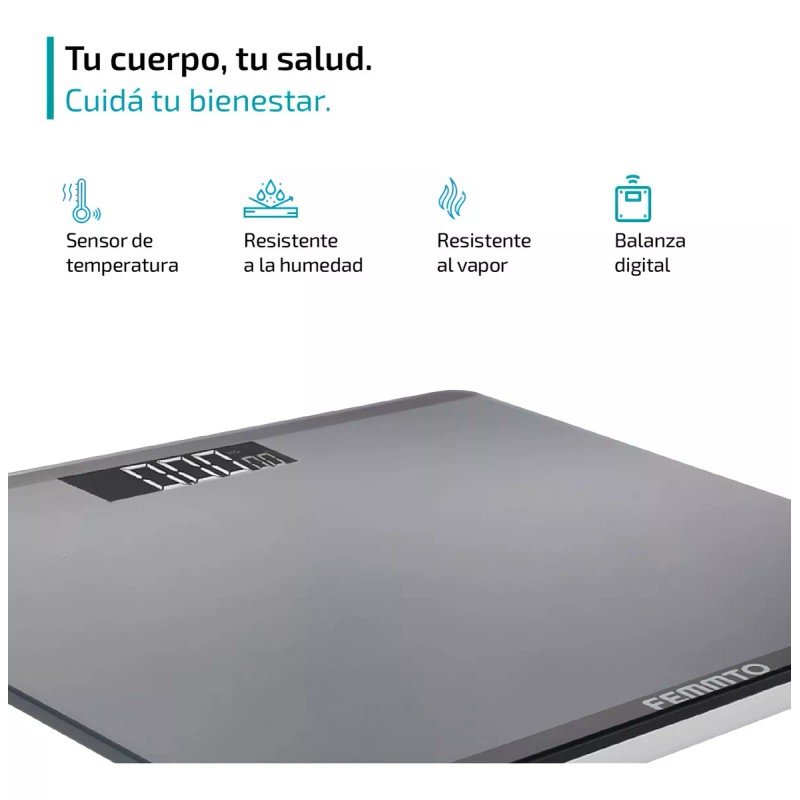 Bascula Digital Peso Personas 180 Kg Pesa Corporal Baño Sensor temperatura Personal Femmto