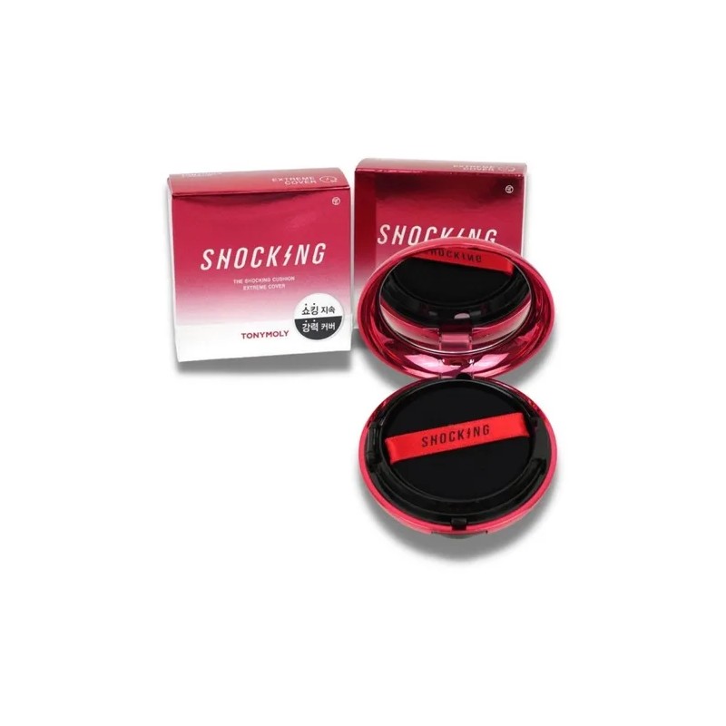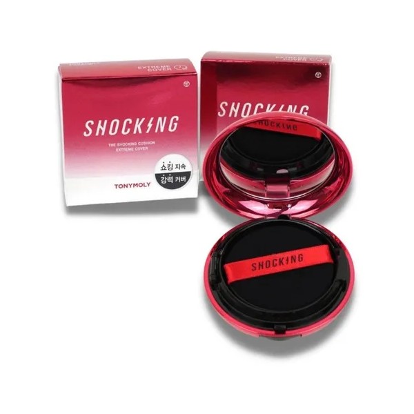 Base de maquillaje en Formato Cushion Tonymoly CUSHION SHOCKING COBERTURA SPF50 CUSHION ALTA COBERTURA tono claro - 15g