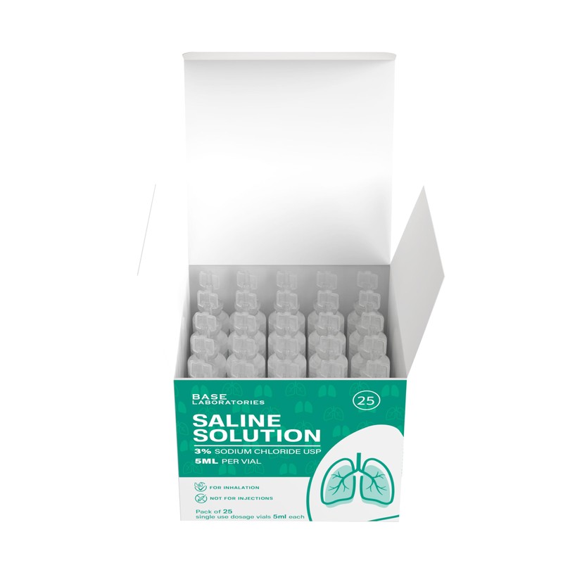 BASE LABORATORIES 3% Saline Solution for Nebulizer Machine | Saline Solution for Inhalation & Nasal Irrigation | High 3% Concentration l (25 x 2) 50 Vials 5ml Unit Dose