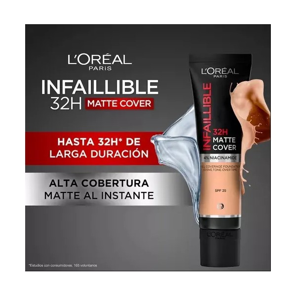 Conoce Infaillible 32H Matte Cover de L'Oréal Paris, nuestra base que revoluciona la larga duración al combinar lo mejor del maquillaje mate y el cuidado de la piel gracias a su fórmula con Niacinamida al 4%. Ideal para quienes sufren de imperfecciones en la piel y buscan un maquillaje que actúe a favor de su piel.