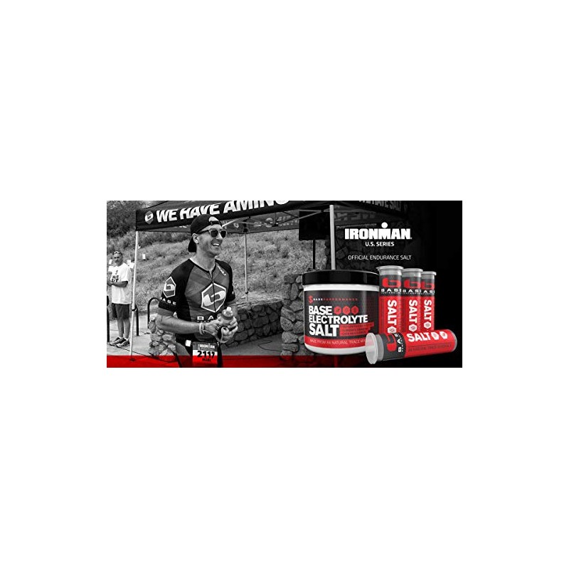 BASE Performance electrolyte salt, 226 Servings tub with 3 refillable race vials.