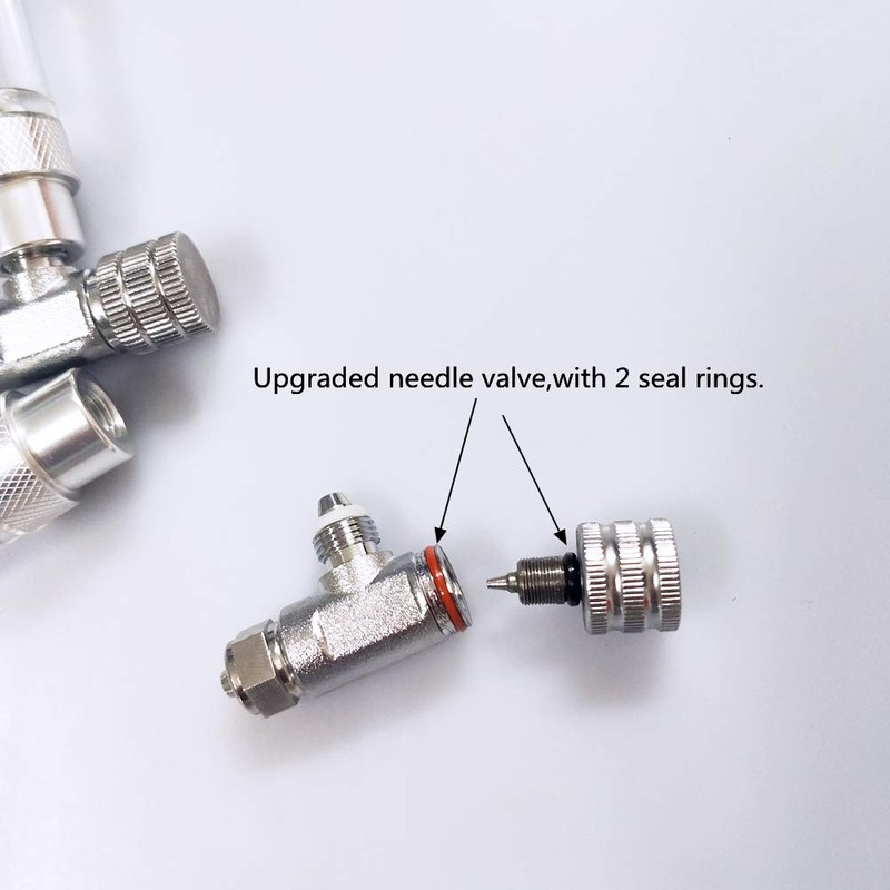• Package include : 2 pcs of needle valves + 2 pcs of bubble counter (with check valves function)+ 1 pc of metal tee