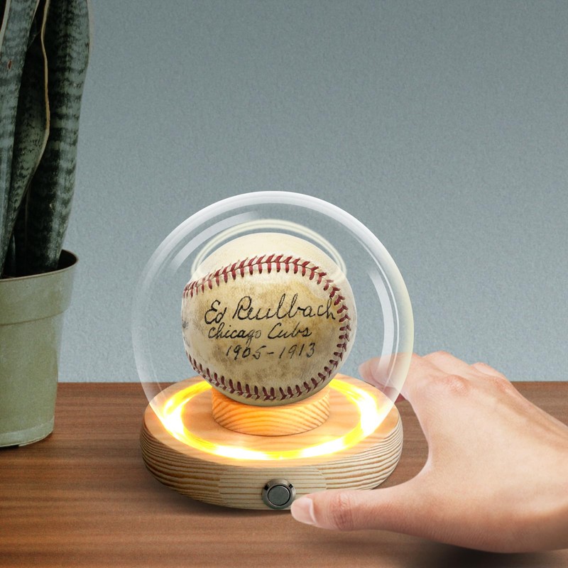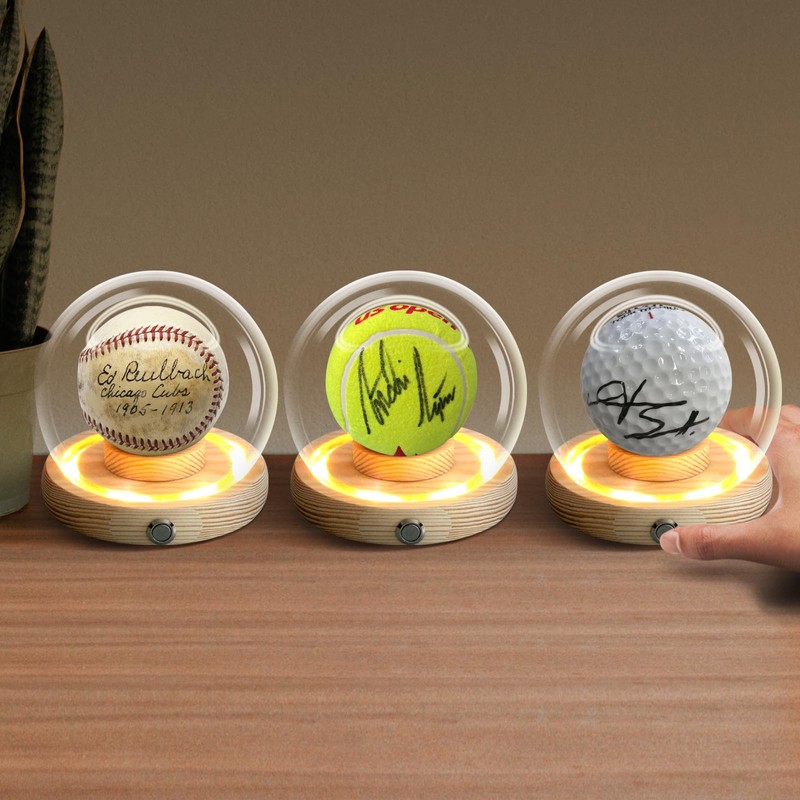 Baseball Display Case - Wooden Base with Glass Dome, Light Up Baseball Holder for Signed Baseballs, Game Balls, and Sports Memorabilia, for Golf Balls, Tennis, and Figurines