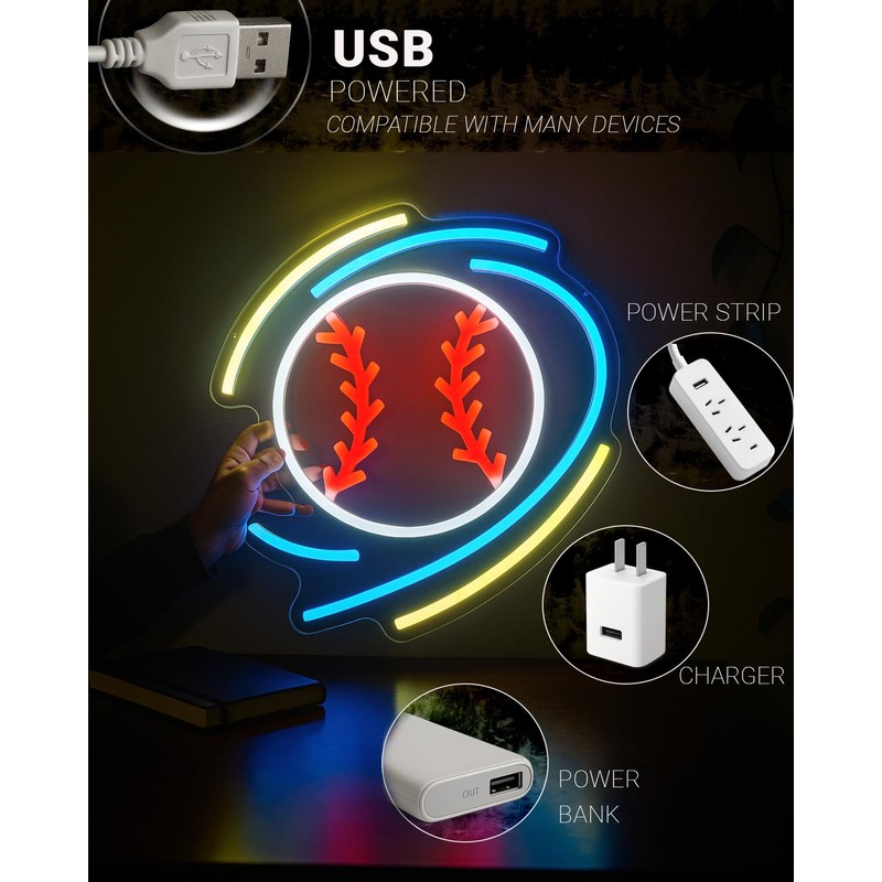 • 【Inspired by Baseball’s Motion】Featuring red stitches and flowing yellow and blue arcs that mimic the dynamic path of a ball in motion, this neon sign brings the thrill of baseball into your space