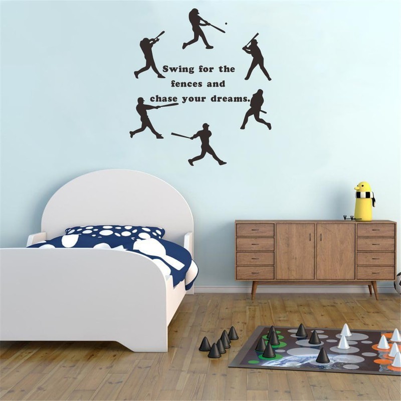 - This wall decal is suitable for various environments, including boys' and teens' sports-themed bedrooms. It creates an immersive atmosphere, inspiring baseball enthusiasts and adding a personalized touch to their living space. Perfect for sports lovers and fans of the game, it brings their passion for baseball to life.
