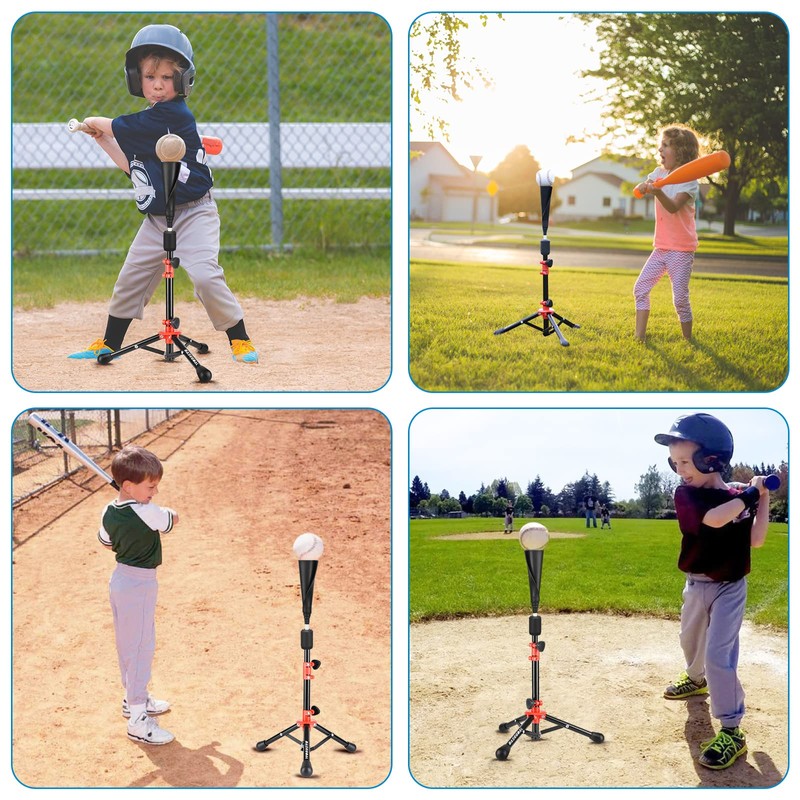 - 1.【STURDY TRIPOD STAND】batting tee for kids, Sturdy tripod configuration provides stability.