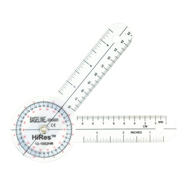 Baseline 360° ISOM High REs Goniometer, 6" ISOM, Measure Body Joint Angles Including Wrist, Elbow, Knee, for Physical Therapists and Healthcare Professionals, Plastic, Wipe Clean, Inches and Cm