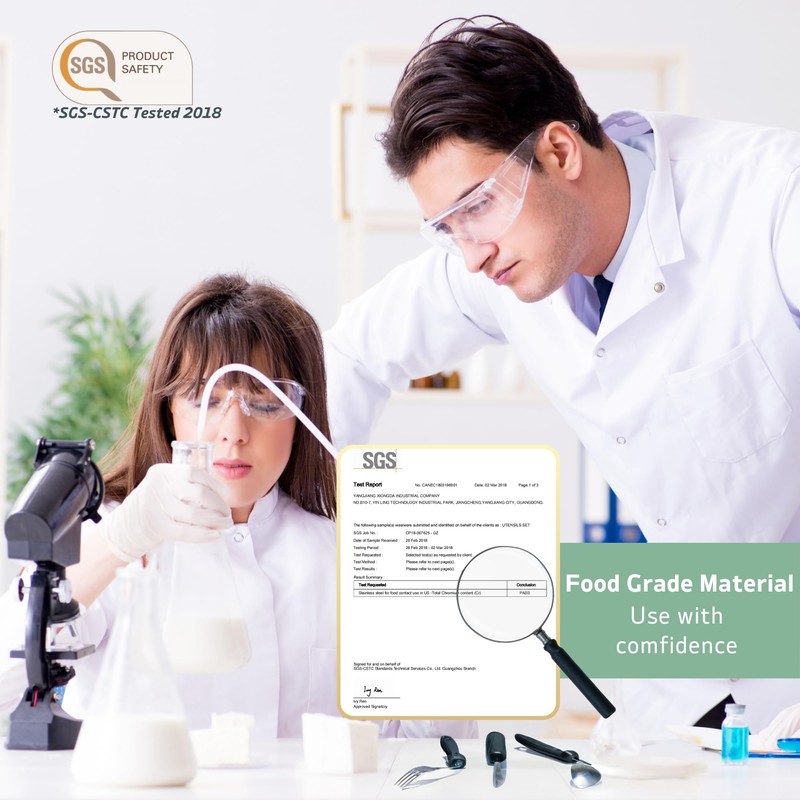 - CONSTRUCCIÓN DURABLE DE ACERO INOXIDABLE: Superficies de acero inoxidable de alta calidad, aptas para lavavajillas, con mangos de silicona de grado alimenticio. Juego de cubiertos adaptables duraderos para uso diario.