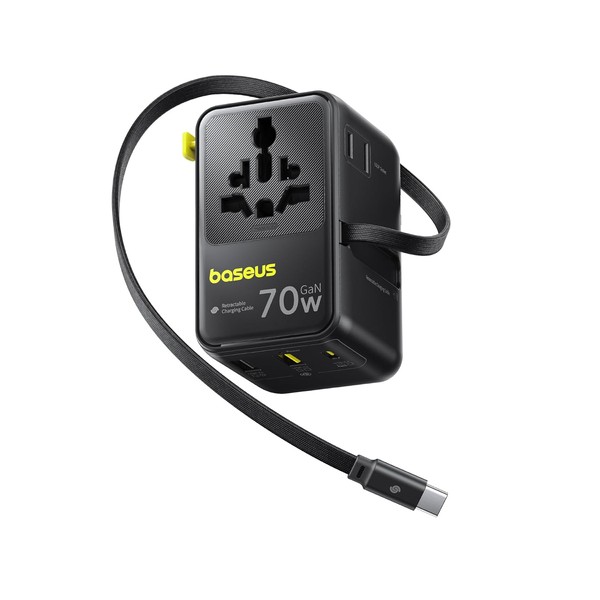 • [Bult-in 70W USB-C Retractable Cable] - Baseus international plug adapter can deliver up to 70W Max. with the built-in retractable USB-C cable, that was braided with nylon to withstand wear and tear in daily use. Just pull to charge anywhere, anytime, no need to carry extra cables.