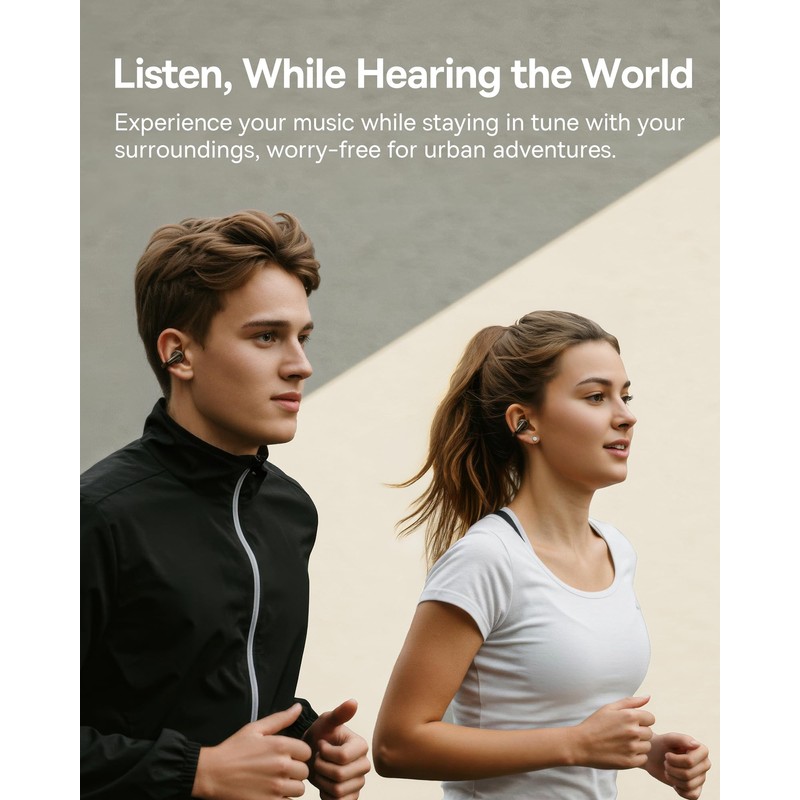 - [Open Ear Clip-on Design] : Enjoy a safe and comfortable listening experience with the open ear clip-on design. Baseus Bowie MC1 open ear earbuds simply clip gently onto your ears and fit perfectly with glasses and other accessories. The innovative open ear earbuds allow you to stay aware of your surroundings, ideal for urban adventures like running, cycling, or walking. Hear both your music and the world around you!