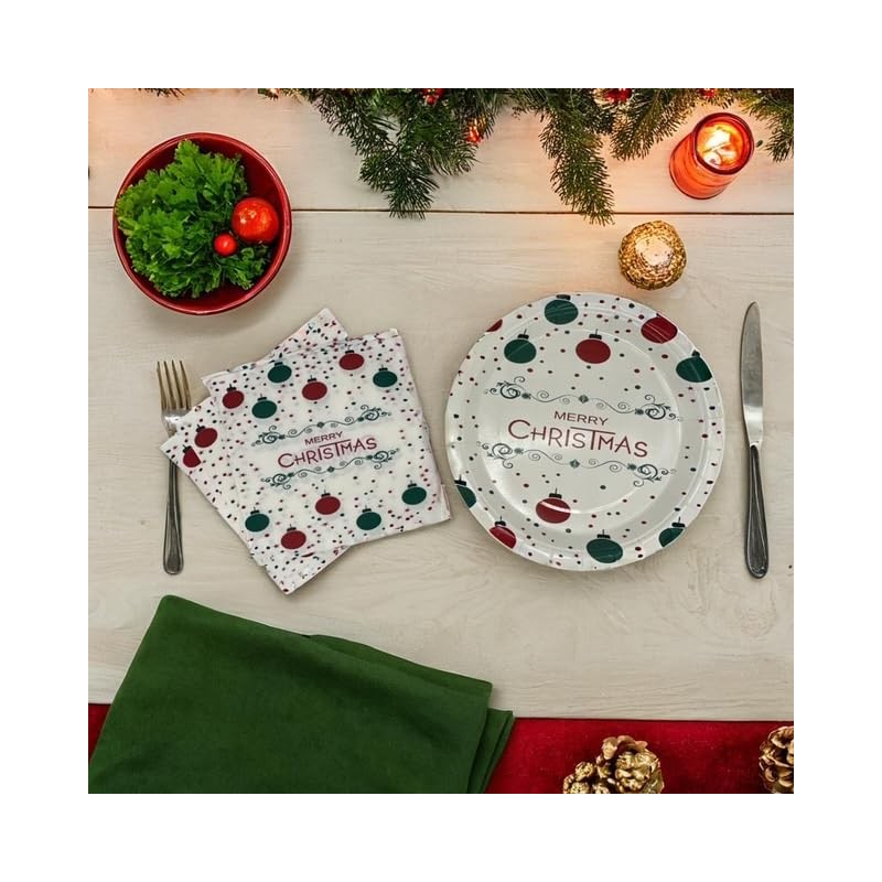 - Charming Christmas Design | Our Merry Christmas green and red ornament designed full print plates and full print large napkins are perfect for your next Christmas party | Classic Christmas glossy printed designed plates are essential when hosting lunch or dinner at home during the holidays | Festive holiday plates are perfect at home or office gatherings