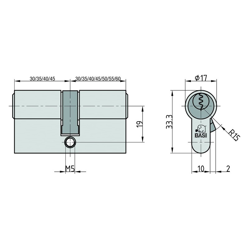 BASI | V50 Profile Double Cylinder 30/30 mm | Different Locking | Profile Cylinder | Door Cylinder Lock Cylinder for House Entrance Doors | Cylinder Lock with 3 Keys
