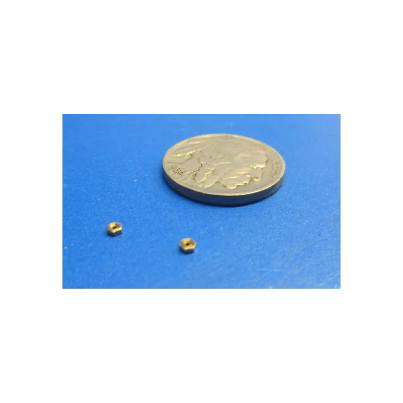 Brass Machine Screw Hex Nut, RH, 000-120 x .036" Height. -10 Pcs