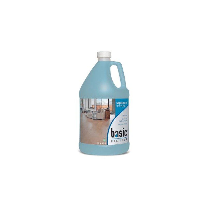 Basic Coatings squeaky ready-to-use cleaner - 1 gallon. Cleans hardwood floors without the residue left behind by other detergents. Squeaky is recommended for cleaning prior to recoating, as well as for general maintenance. Squeaky is also ideal for cleaning laminate floors.