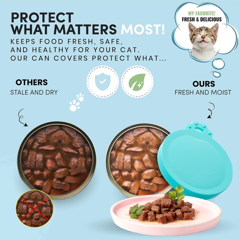 - Easy to use: The cat food cover lids are designed for effortless application and removal, allowing you to quickly seal and store your pet's food without any mess. These Can Covers for Dog Food Cans ensure a Perfect Seal, preserving freshness and flavor.
