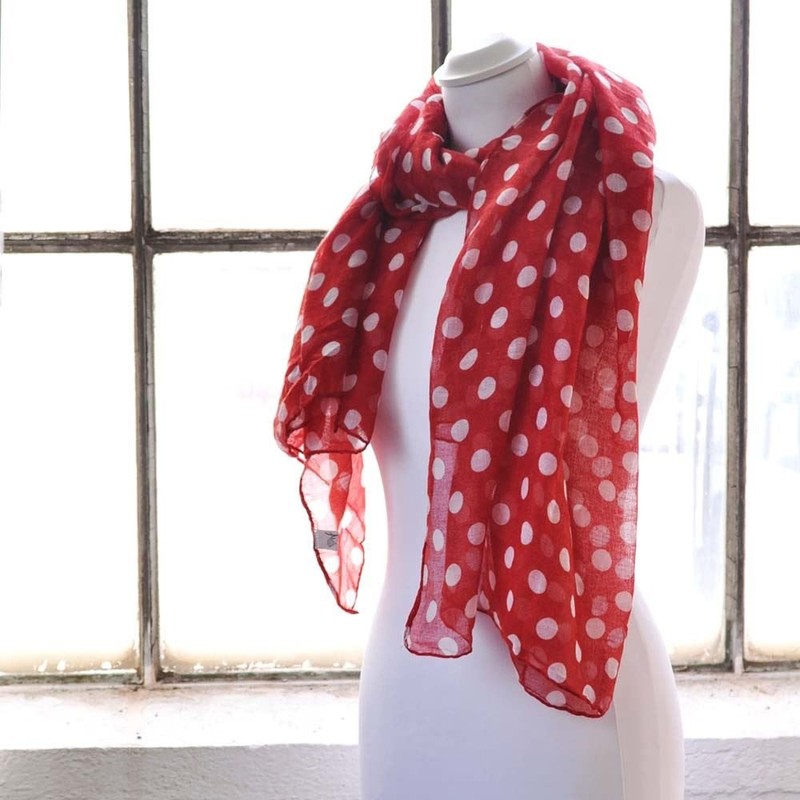 Basic Sense 10mm Polka Dot, Large Viscose Scarf, Red/White Dot