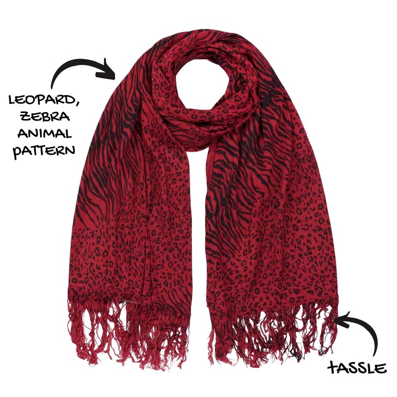 - WINTER ACCESSORY : Keep warm in our unique mixed animal print winter warm scarf. The fringed hem adds an extra layer of style and warms to the already powerful
