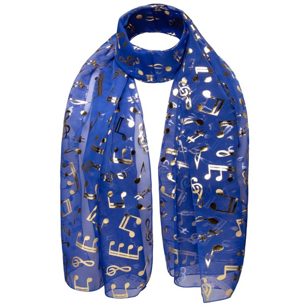 Basic Sense Music Note Foiled Light Weight Scarf, Royal Blue