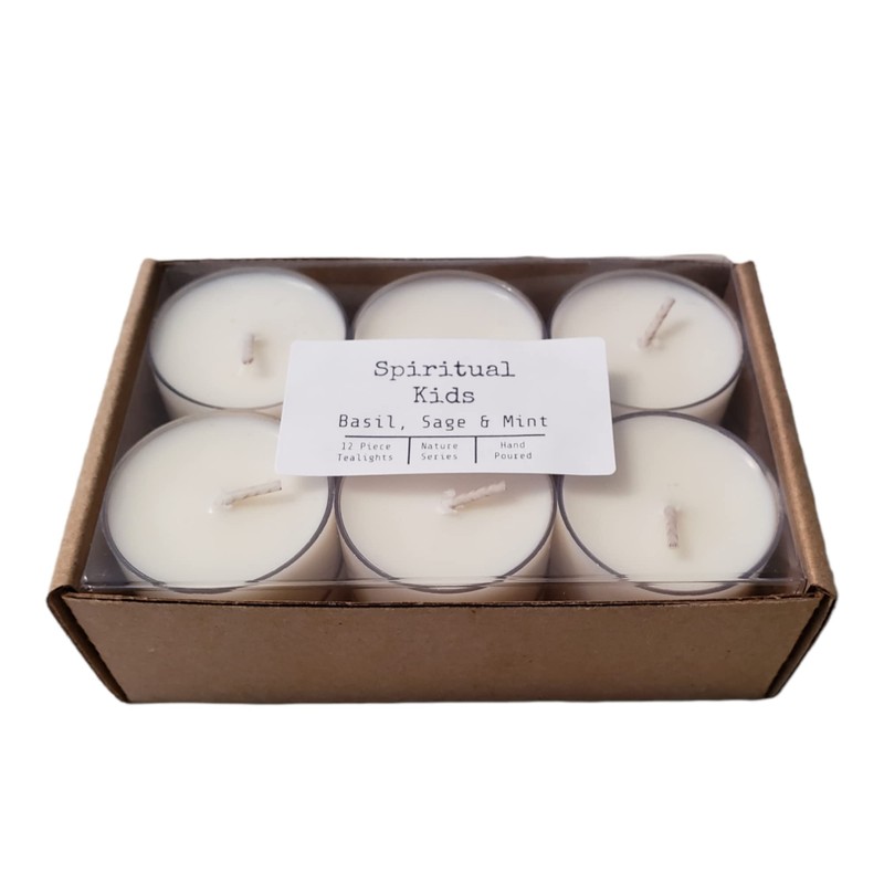 Basil, Sage & Mint Natural Soy Wax 12ct Tealights Hand Poured with Fragrant/Essential Oils