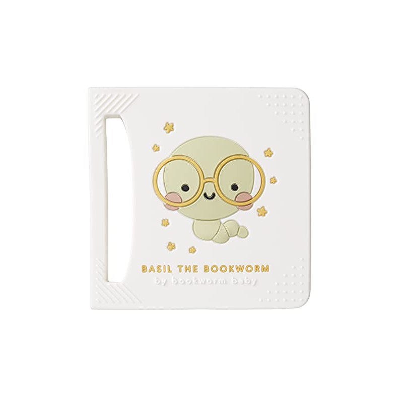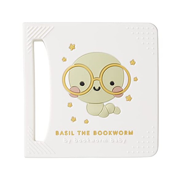 Basil The Bookworm Baby Teether - BPA-Free Silicone, Original Book-Shaped Teething Toy for Babies 3+ Months (Soft Textures, Easy-to-Hold, Freezer Safe)