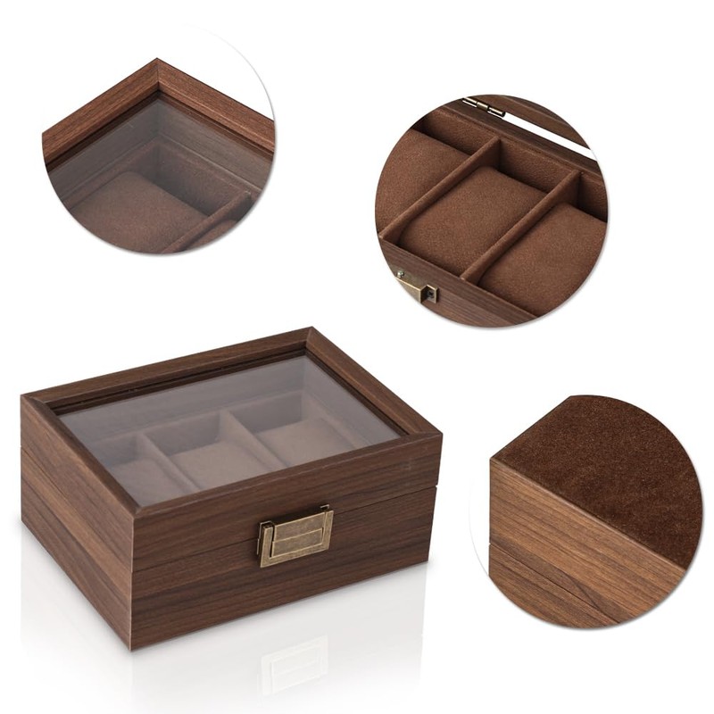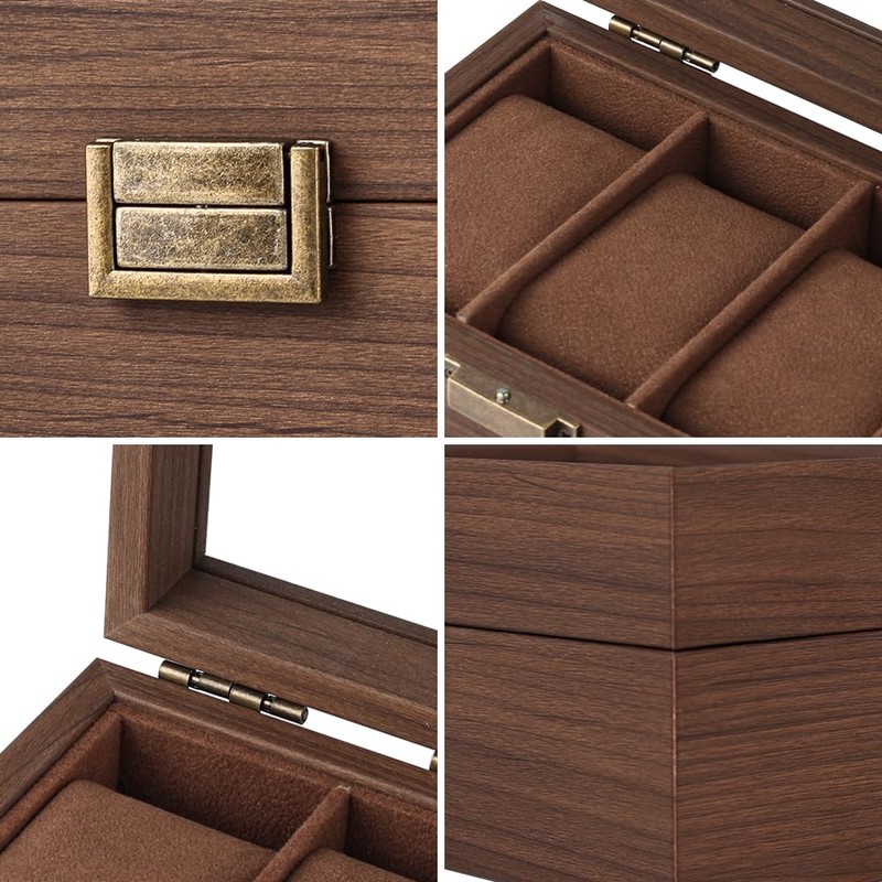 - The muted color wooden storage case gives you the peace of mind that your precious watch collection. The simple yet functional design is focused on depth and straight lines, giving it an elegant and luxurious feel