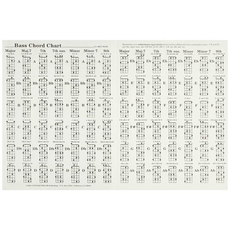 - Diagramming 84 of the most popular chords for bass guitar, Bass Guitar Chords includes finger placement, note construction, chromatic charts, and most commonly used bass scales