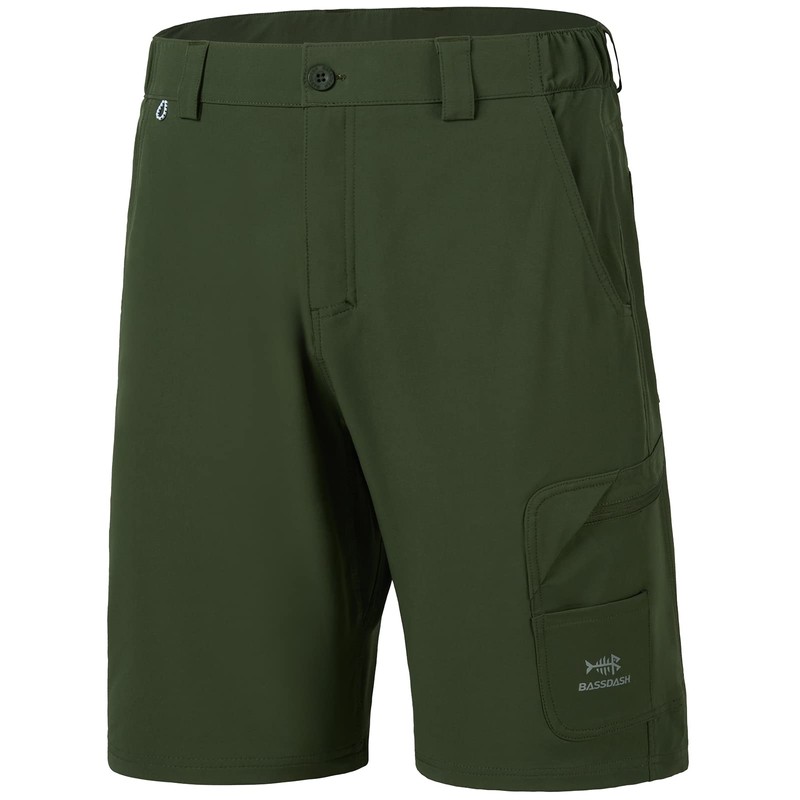 BASSDASH 10.5” Mens Fishing Cargo Shorts Quick Dry UPF 50+ Water Resistant FP01M, Army Green, Large