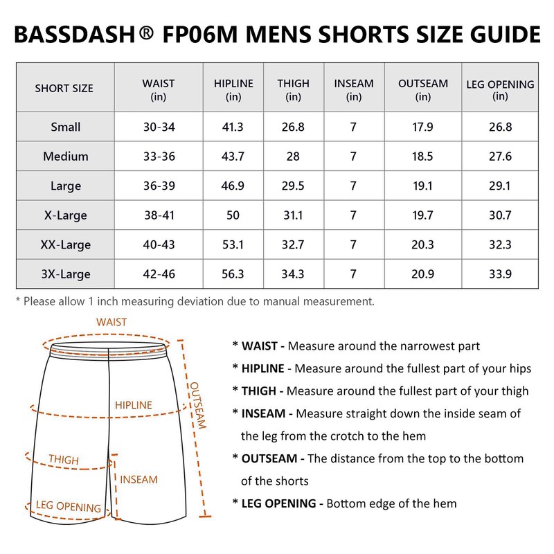 Bassdash Men’s 7” Fishing Shorts UPF 50+ Lightweight Water Resistant Quick Dry for Hiking with Zipper Pocket FP06M