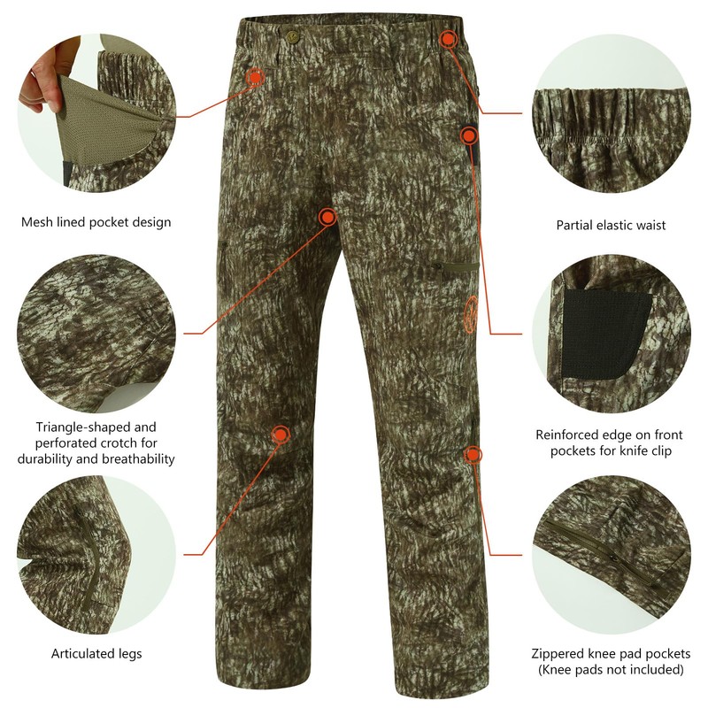 • The breathable, lightweight pant enhanced with perforated crotch provides advanced cooling and superior ventilation, suitable for early season warm-weather hunting from spring turkey hunting to summer
