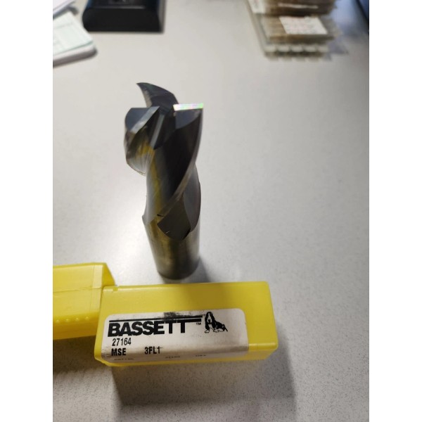 Experience precision cutting with the Bassett-27164-1" diameter, 3-flute, carbide end mill. Ideal for enthusiasts and professionals alike, this solid carbide tool guarantees durability and exceptional performance. Its square end mill design is perfect for achieving sharp, clean corners and smooth finishes on a variety of materials.The end mill features a single end configuration, allowing for efficient chip removal and a seamless cutting action. With a 1-inch mill diameter and three flutes, it provides a balanced cutting experience that ensures longevity and reliability for all your metalworking projects.