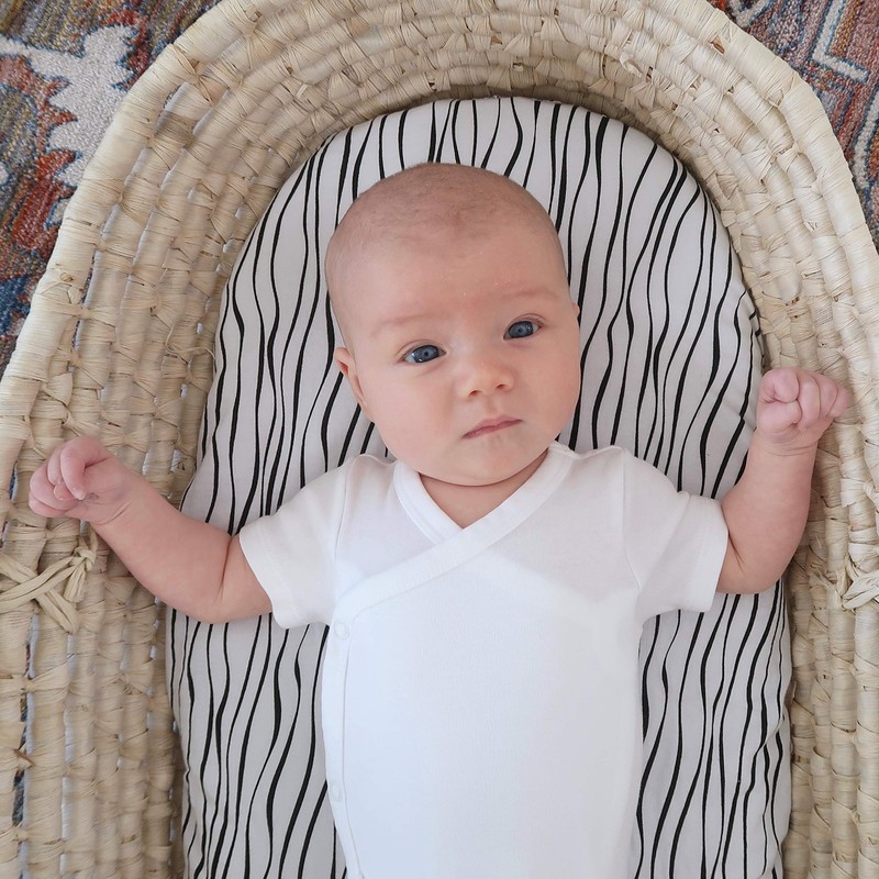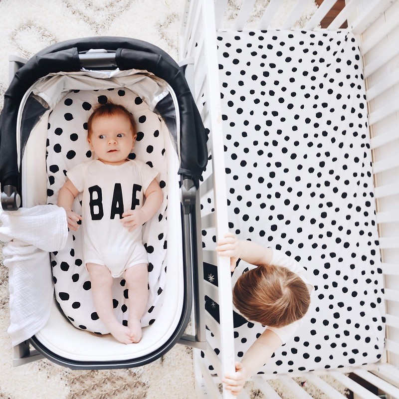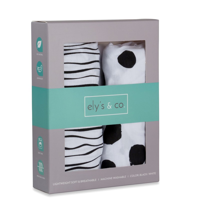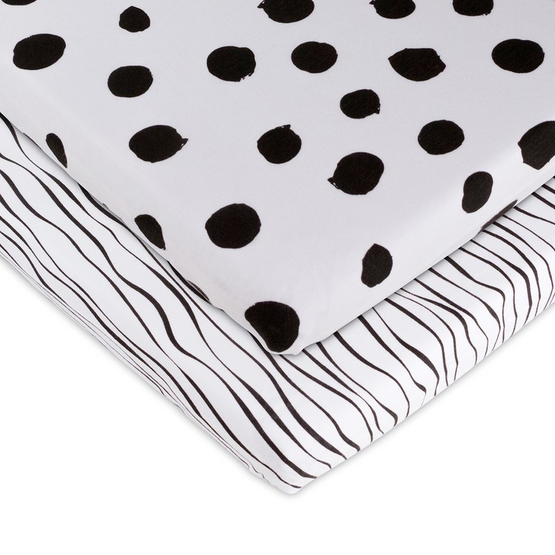 Bassinet Sheet Set 2 Pack 100% Jersey Cotton Black and White Abstract Stripes and Dots by Ely's & Co