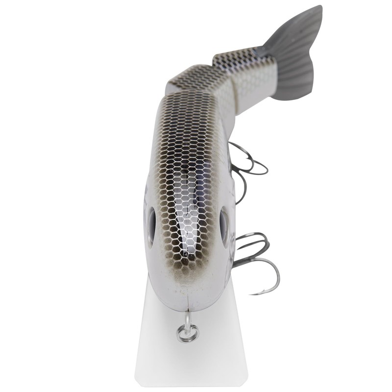 - 3 segments jointed to enhance the life-like swimming action; A textured, soft rubber fishtail to give the bait a secondary motion; With a set of durable, razor sharp, sized 4 treble hooks that provide excellent hook up ratios and secured hook-sets on big fish