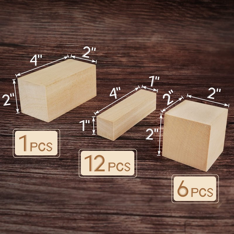 Basswood Carving Blocks, 19PCS Whittling Wood Blocks Kit with 3 Different Sizes, Bass Wood for Carving Easy to Use, for Kids and Adults