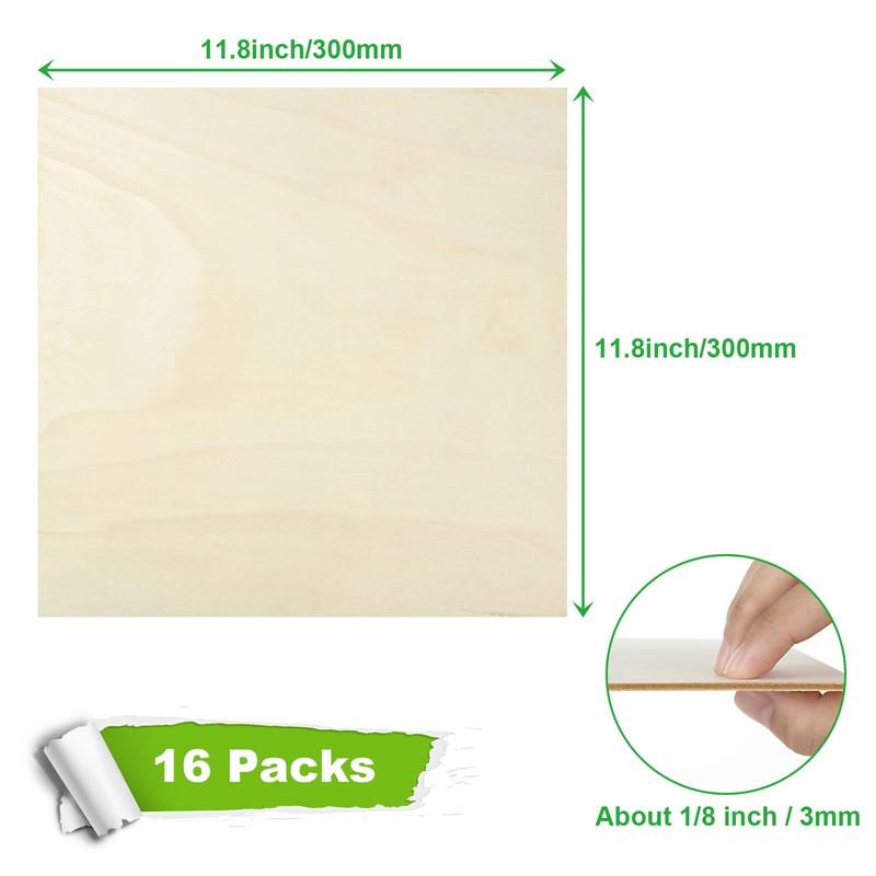 - Specification - The size of eachsquare wood pieces is 11.8 x 11.8 Inch, about 1/8 inch (3mm) thick. The tolerance of thickness is 0.5mm.