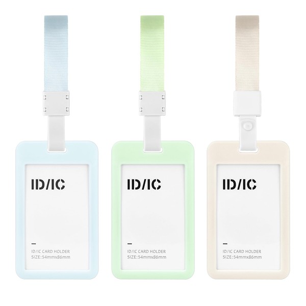 BASUNOCL 3 PCS Sliding Vertical ID Badge Holder with Lanyard, Waterproof ID Card Holder with Clear Window for Office School ID Credit Cards Nurses and Proximity Key Cards