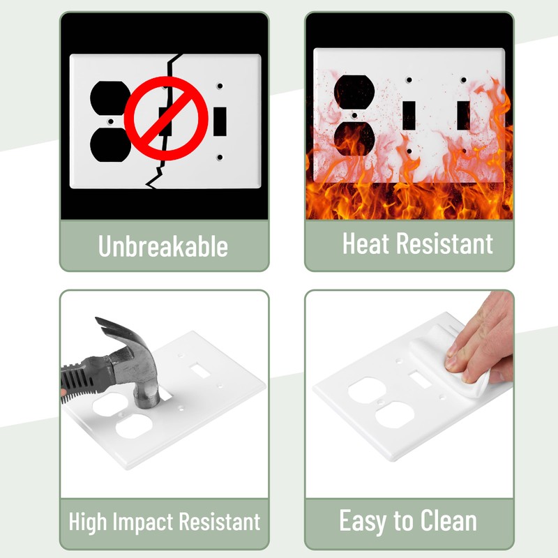 - These wall plates are unbreakable, heat-resistant, and highly impact-resistant, making them perfect for high-traffic areas and ensuring a reliable, sturdy finish.